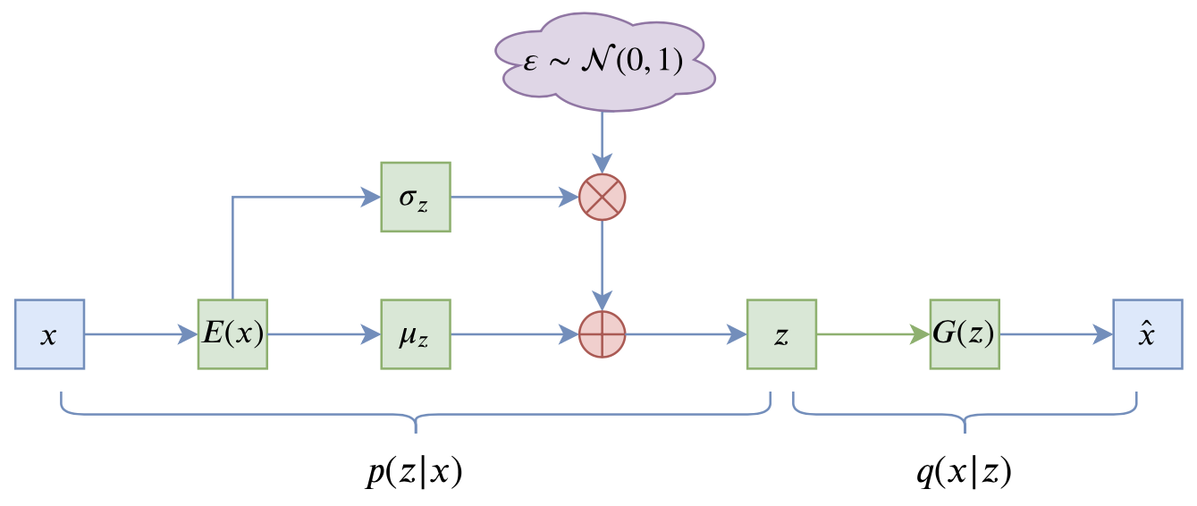 如前文所说,VAE 的训练流程大概可以图示为