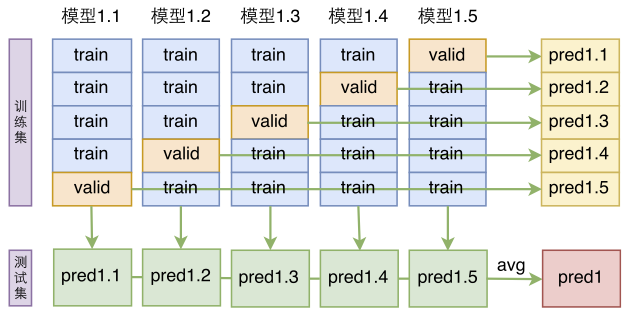 这样一来,我们就得到了同一个模型的 $k$ 个不同训练结果,然后将这些结果平均一下,就是模型融合了: