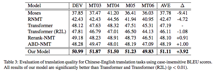 为了消除这种不对称性,《Synchronous Bidirectional Neural Machine Translation》提出了一个双向解码机制,它维护两个方向的解码器,然后通过 Attention 来进一步对齐生成。